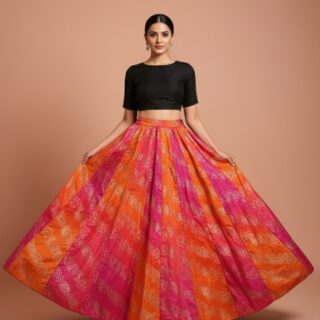 Cream and Gold Shimmer Woven Paneled Skirt free size