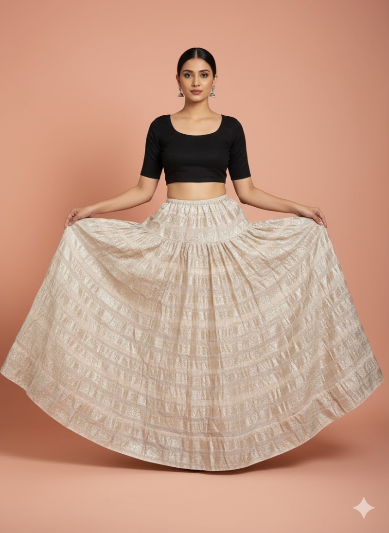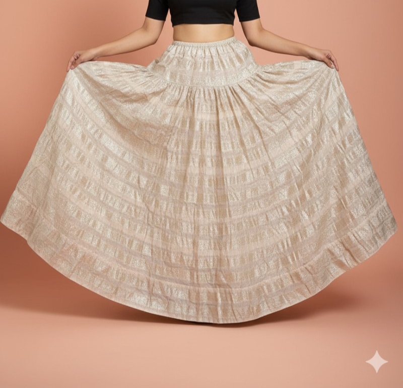 Cream and Gold Shimmer Woven Paneled Skirt free size