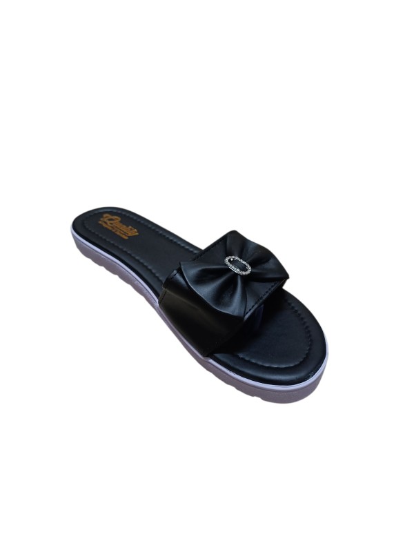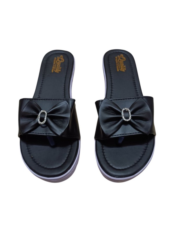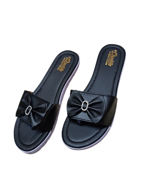 Elegant Black Bow Slip-On Flats Sandal
